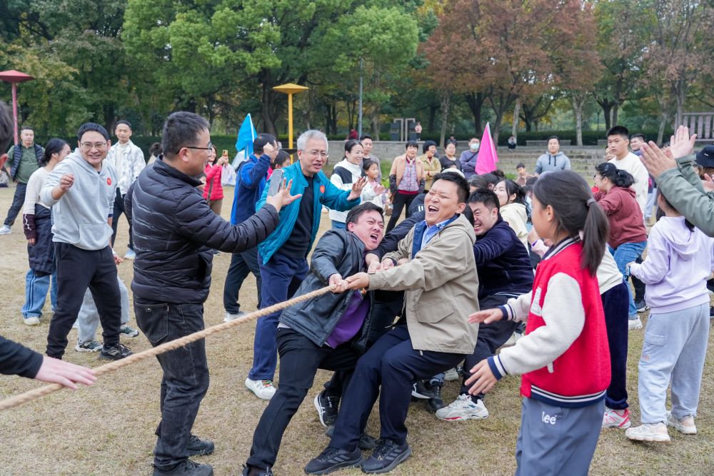 运动会在专业主持人的激情引导下渐入佳境。“趣味毛毛虫”比赛中,家长与孩子协力前进,萌趣画面引发阵阵欢笑;“有求必应”环节,一个个天马行空的指令在亲密无间的配合中顺利完成;“同舟共济”的踏板上前行的不仅是脚步,更是家人间的信任扶持;而“滚滚战车”的巨型履带里,此起彼伏的加油声将比赛推向高潮。新颖的“俄罗斯方块”游戏将经典游戏搬进现实,大小玩家们奔跑传递积木的模样宛如跃动的音符;“趣味闯关赛”中设置的平衡力、反应力挑战,让爸爸妈妈们重拾童真;压轴项目“拔河比赛”更是上演了力量与团结的盛宴,绳缆两端紧绷的是力量,串联的是代代相传的土木精神。